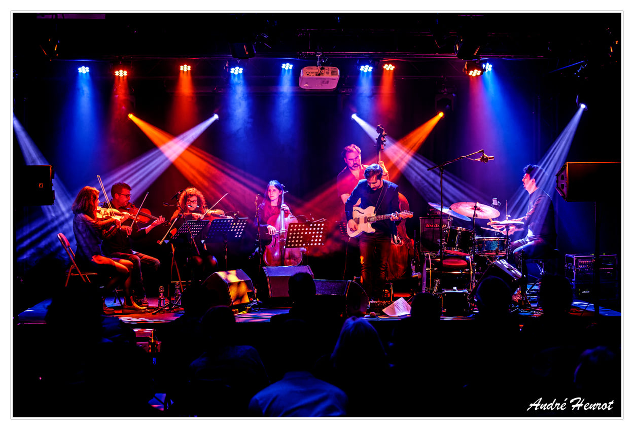 Le guitariste Lorenzo Di Maio (Octave de la musique en 2017) nous revient avec une formule classique du trio contrebasse-batterie-guitare à laquelle il joint un quatuor à cordes. Cette association offre à sa musique une combinaison de couleurs et de textures sonores immensément riches.Agrémenté de la poésie de ses interprètes, le groupe dévoile un répertoire aux ambiances contrastées qui crée une passerelle entre la pureté acoustique des cordes et les atmosphères électriques de la guitare.